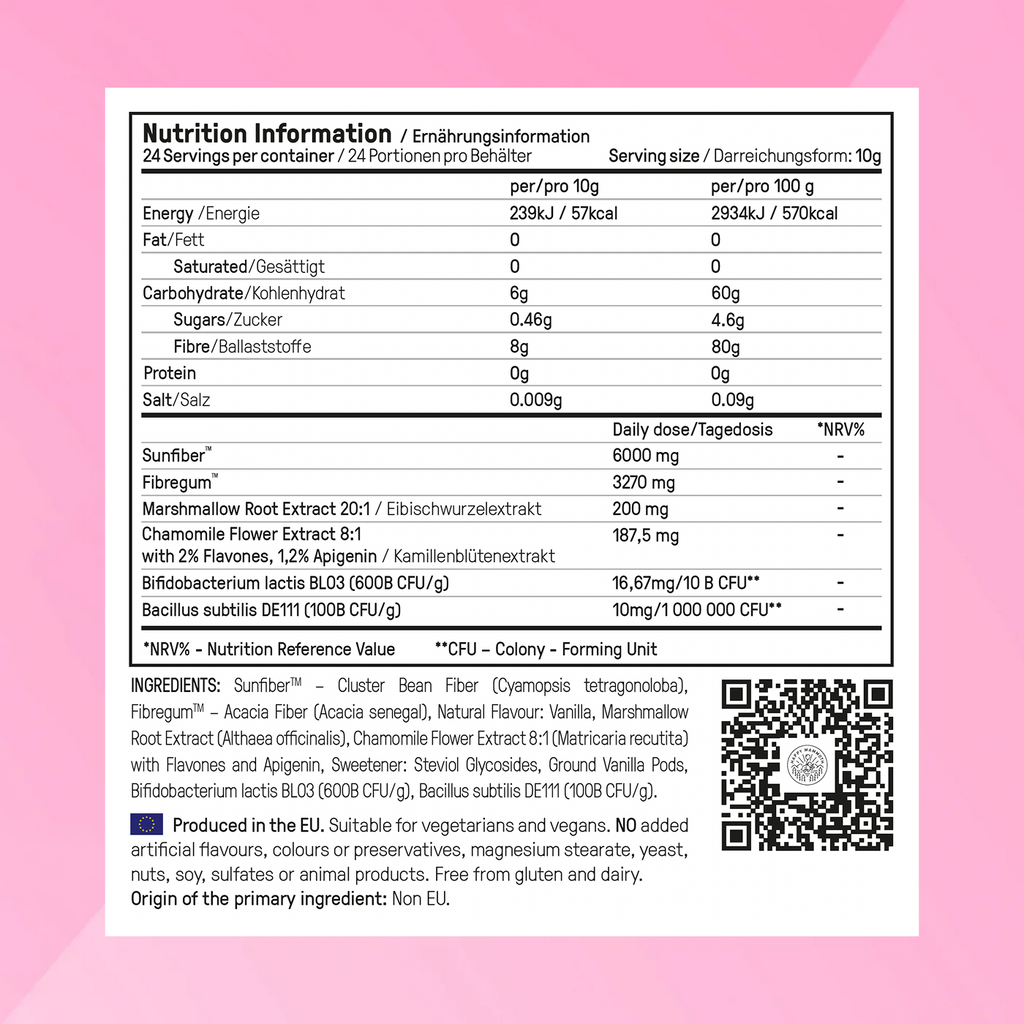 Mischen Sie einfach 1 Esslöffel des köstlichen Pulvers in ein Glas Wasser oder Pflanzenmilch, nach Bedarf ein- bis zweimal täglich.
